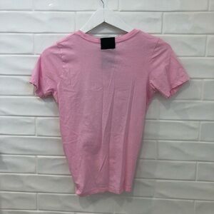 This Delfi Collective Illuminati Cotton T-Shirt features a crew neckline with short sleeves and a glitter print front. Printed front. Unlined. Composition: 100% cotton. Pull on. Made in the United States of America. Color: pink