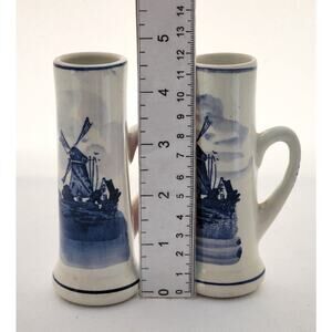 DELFTS HOLLAND-Shot Glasses-Blue White-Windmill-Handles-Set of 2