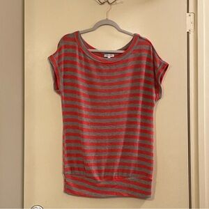 DELIA*S Striped Short Sleeve Light Knit Top in Orange and Gray