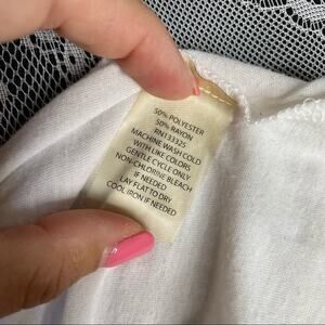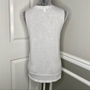 Some slight wash wear, not noticeable. No other flaws. Longer tunic muscle tee style with large armholes. Very lightweight and ever so slightly sheer. Crew neck. Size small.
