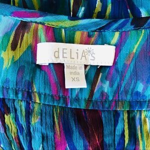 DELIAS Blue Colorful Ruffle Button Front Sheer Tank Size XS