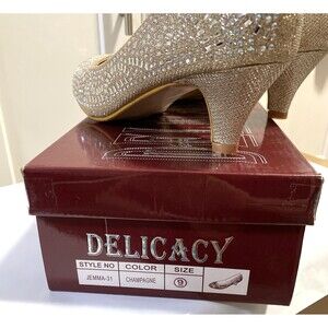 DELICACY Champagne Gold Rhinestone Heels Shoes Sz 9 NWBox Party Holiday Cocktail