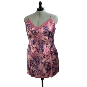 DELICATES Set Y2K Feminine Slip Lingerie Satin Feel Pink Sz XL Rose Print Lace