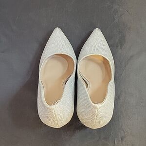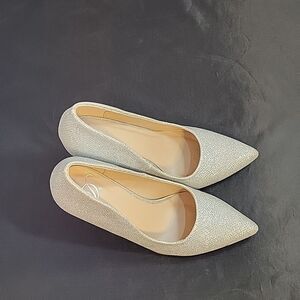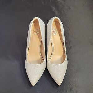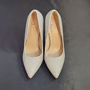 DELICIOUS METALLIC GLITTER POINTED TOE WOMEN"S HIGH HEEL STILETTOS PUMP SIZE 6 1/2 COLOR METALLIC SILVER MADE WITH ALL MAN MADE MATERIALS HEEL HEIGHT MEASUREMENTS APPROX 4"INCHED THIS ITEMS IS PRE-OWNED EXCELLENT CONDITION WITH ONLY LIGHT SIGNS OF WEAR IF ANY CHECK THE PICTURES