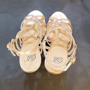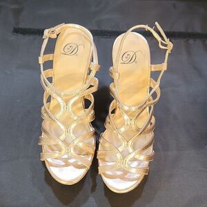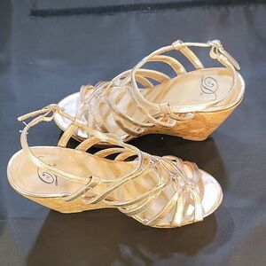 DELICIOUS WEDGE PEEP-TOES PLATFORM SANDAL SIZE7 COLOR ROSE GOLD MADE WITH ALL MAN-MADE MATERIALS LINING BALANCE MAN MADE MATERIALS HEEL HEIGHT MEASUREMENTS APPROXIMATELY 4.25"INCHED THIS IS A PRE-OWNED EXCELLENT CONDITION WITH ONLY LIGHT SIGNS OF WEAR IF ANY CHECK THE PICTURES