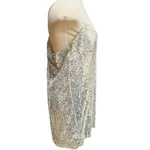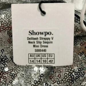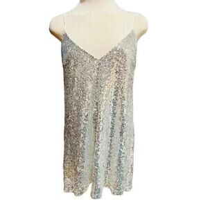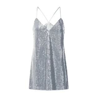 DELILAAH MINI DRESS STRAPPY V NECK SLIP SEQUIN DRESS IN SILVER SIZE 10 NWT