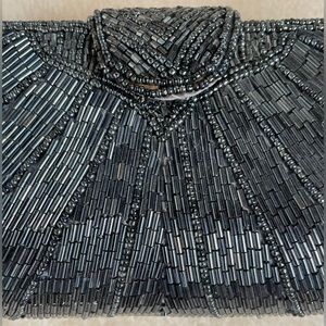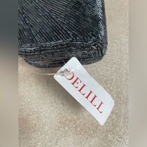 DELILL Vintage 80s/90s Beaded Rectangular Evening Cocktail Bag Gold Chain
