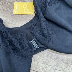 DELIMIRA Bra Womens Size 46C Black Front Closure Unlined Underwire Lace W657A