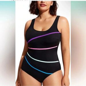 DELIMIRA Women's Retro Striped One Piece Plus Size Swimsuit Size 22 NWT. X