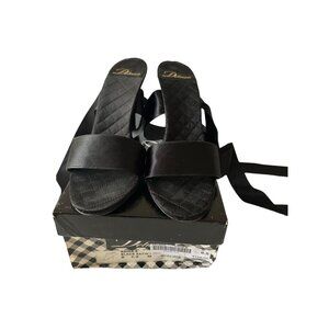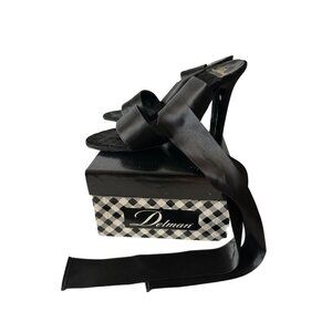 DELMAN Raina Black Satin Lace Up Heels Size 6.5