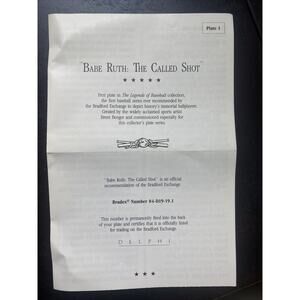 This vintage Delphi plate featuring baseball legend Babe Ruth is a must-have for any sports memorabilia collector. The plate showcases a famous moment in Ruth's career known as "The Called Shot."