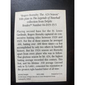 DELPHI ROGER HORNSBY THE .424 SEASON LARGE 8" PLATE BRADFORD EXCHANGE
