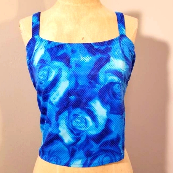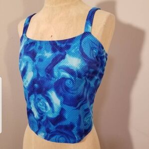 DELTA BURKE BRIGHT BLUE FLOWERS PIXEL SWIM TANK CROP TOP TANKINI PLUS VINTAGE 16