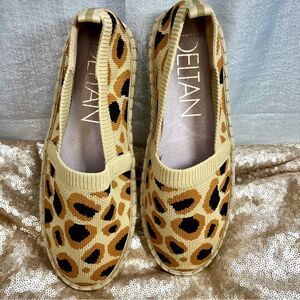 DELTAN Hensley Oak Fly Knit Leopard Espadrilles Slip On Flats Women's Size 7M