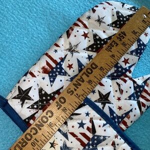 DELUXE KITCHEN SET Oven mitt and hot pad red white blue stars stripes.