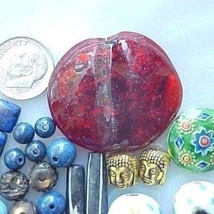 Huge Foil Glass Focal Lampwork Bead, large horn tube bead ~ huge hole glass fruit beads, genuine lapis ~ cloisonne ~ real horn, GREAT assortment of items for your wanderlust creations. Buddha Heads beads , arrow charm, feather charms