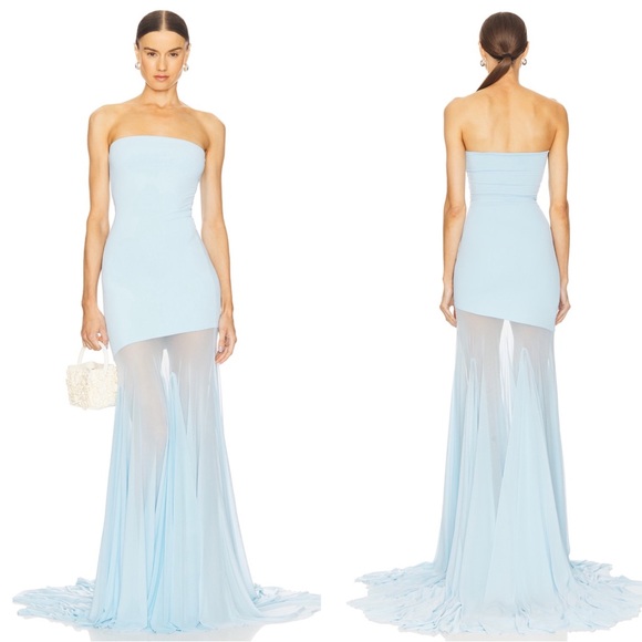 DEME By Gabriella Dahlia Strapless Sheer Blue Maxi Dress Size Medium has been worn once and is in excellent condition! The perfect wedding guest or special events dress! Featuring: