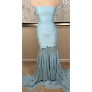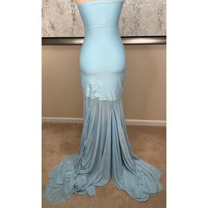 DEME By Gabriella Dahlia Strapless Sheer Blue Maxi Dress Size Medium
