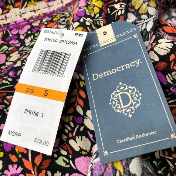 DEMOCRACY $78 BUTTERFLY SLEEVE FLORAL PRINT V NECK TOP SM NWT