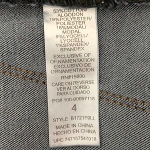 Democracy Ab solution Jeans, Size 4 (See approximate measurements below), Blue Denim. Waist 15”, Rise 10”, Inseam 27.5”, Length 37”. Measured laying flat. Very Good Condition. 408