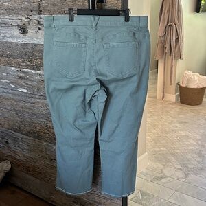 Details: Add a fresh pop of color to your wardrobe with these high-rise cropped itty bitty flare jeans. The finished reverse fray hem adds a touch of edge.