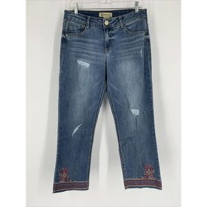 DEMOCRACY Jeans Sz 8 30x25 Medium Wash Crop Slim Straight Flood Embroidered
