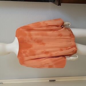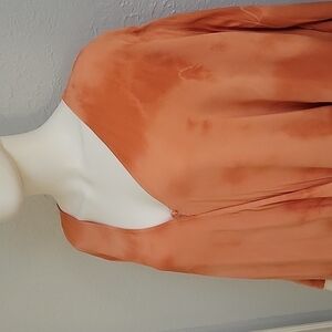 DEMOCRACY Orange Tie Dye Surplice Crossover Poncho Blouson Festival Blouse