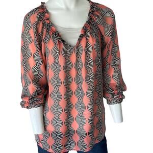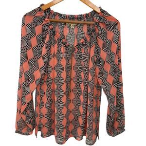 DEMOCRACY Peasant Top Size Medium Lightweight Sheer Y2K Boho Geometric
