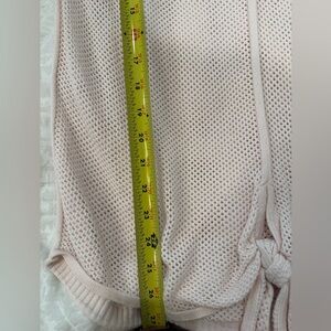 Stylish cream knit top with long sleeves. Features a tie detail at the hem.