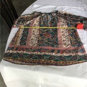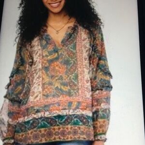 DEMOCRACY RUFFLE FLORAL LONG SLEEVES BOHO CHI BLOUSE SIZE LARGE
