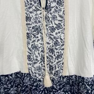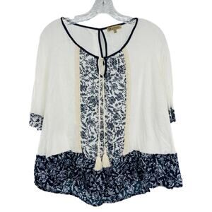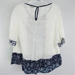 DEMOCRACY White Black Color Block Print Pullover Blouse 3/4 Sleeve Blouse M