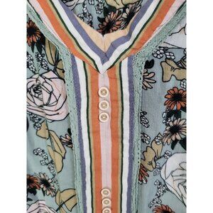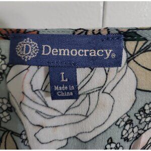 DEMOCRACY Women's SZ LG Floral Striped 3/4 Kimono Sleeve V-Neck Flowy Tunic Top