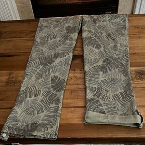 Democracy pants, size 12 , leaf pattern, in good condition, roll up tabs on pant leg