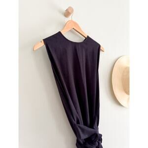 raw silk wrap dress, doen market dress, sleeveless midi dress, tie waist dress, bohemian elegance, minimalist chic dress, timeless black dress, effortless california style, elevated summer outfit, modern romantic style, sustainable fashion piece, resort vacation dress, garden party outfit, luxury boho dress, versatile wardrobe essential