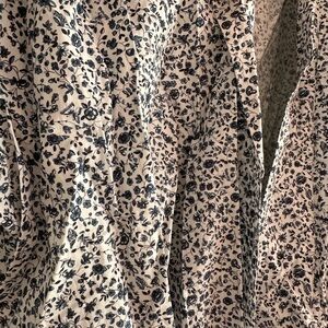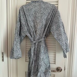 Chic DÔEN robe with a delicate floral pattern. Features a blend of blue and cream colors. Also great as a pool cover up.