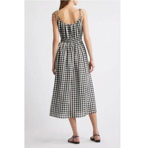 DÔEN Gingham Pleated Linen Blend Maxi Dress