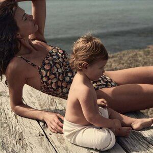 Details: Noir Tresors de la Mer print, the Marbella Maillot - is a one-piece swimsuit with a straight neckline, a high cut, and a crisp vintage-feel fabric. Slender straps fasten at the back with two hidden buttons that allow you to adjust the length. A center back seam lends shape, while contrast smocking at the back adds stretch and texture. Zigzag stitches adorn the edges. Wear on its own, or layer under a high-waisted trouser.