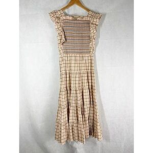 DÔEN Midi Plaid Arbor Smocked Midi Dress Size XS