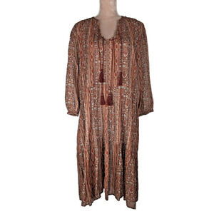 DÔEN Normandy Dress Small Tasseled Paisley Flowy Brown Red Dress