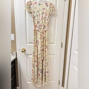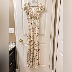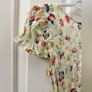 In silk-viscose twill graced with our ‘30s-inspired Windswept Blooms print, the Valerine Dress features short puffed sleeves and a sweetheart neckline trimmed with petite ruffles. A fitted waist yoke gives way to an ankle-grazing bias cut skirt, and an invisible side seam zipper offers the perfect fit