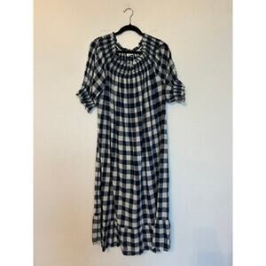 DÔEN Whisper Dress Blue White Gingham Embroidered Midi Dress