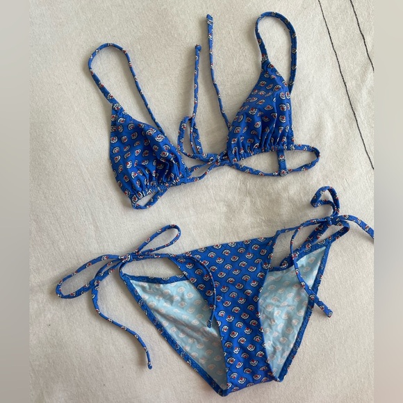 DÔEN blue Capri & Positano string bikini top and bottom from Summer 2024. Worn once & washed. Bottoms are XS, top is S.