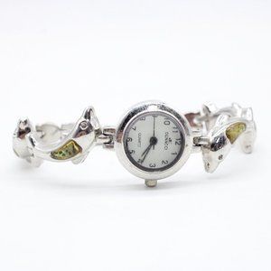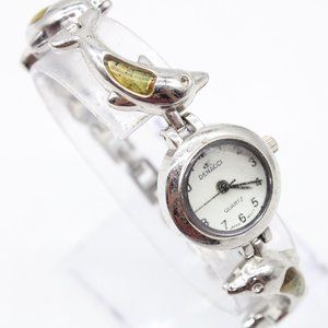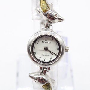DENACCI Watch Womens Silver Tone Stainless Steel Dolphins Design Bracelet Rare