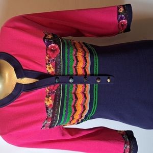This dress was made by Runway Designer Deng Hao from Shenzhen China. It's a gorgeous knit dress with colored details at the bodice. 5 faux pockets in front covered in matching material.