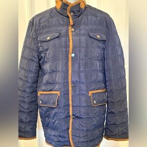 DE-NIKO Milano Men’s Lightweight Navy With Brown Trim Zip Up Jacket With Pockets
