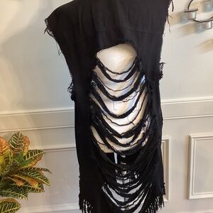 DENIM BLACK DISTRESSED SLEEVELESS JACKET (Size: 1X)