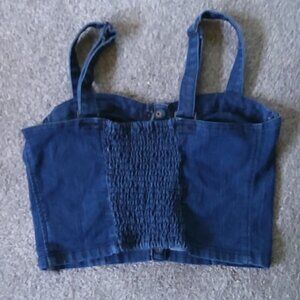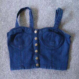 Denim blue front button crop tank top ajustable straps size XXL 19"chest 14"length