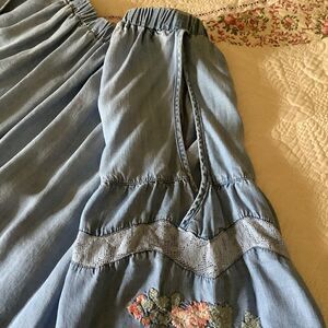BLUE DENIM HIGH-LOW EMBROIDERED LACED SLEEVES OFF-ON SHOULDER TOP SIZE XL