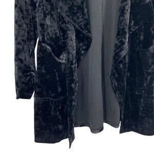 DENIM & CO CANYON RETREAT NWOT Crushed Velvet Draped Collar Cardigan Black XXS
