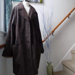 DENIM & CO Dark Brown Ladies Suede and Sherpa Lined Coat Women's Size XL-XXL